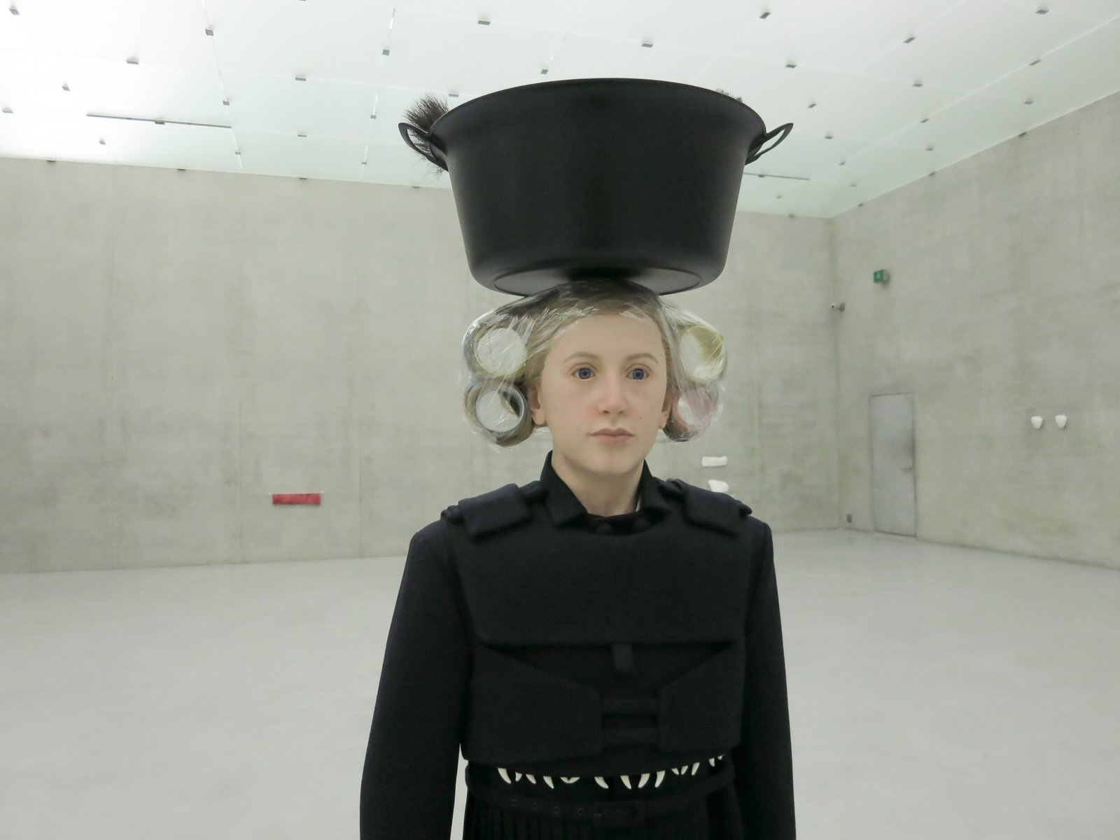 Eine Puppe mit schusssicherer Weste, Trachtenrock samt Strapsen, Lockenwicklern im Haar und einer Schüssel voller Gamsbärte auf dem Kopf. Trockels Interpretation der Vorarlbergerin: Ein Blick von außen, der erheitert und mir im Gedächtnis hängen blieb.
